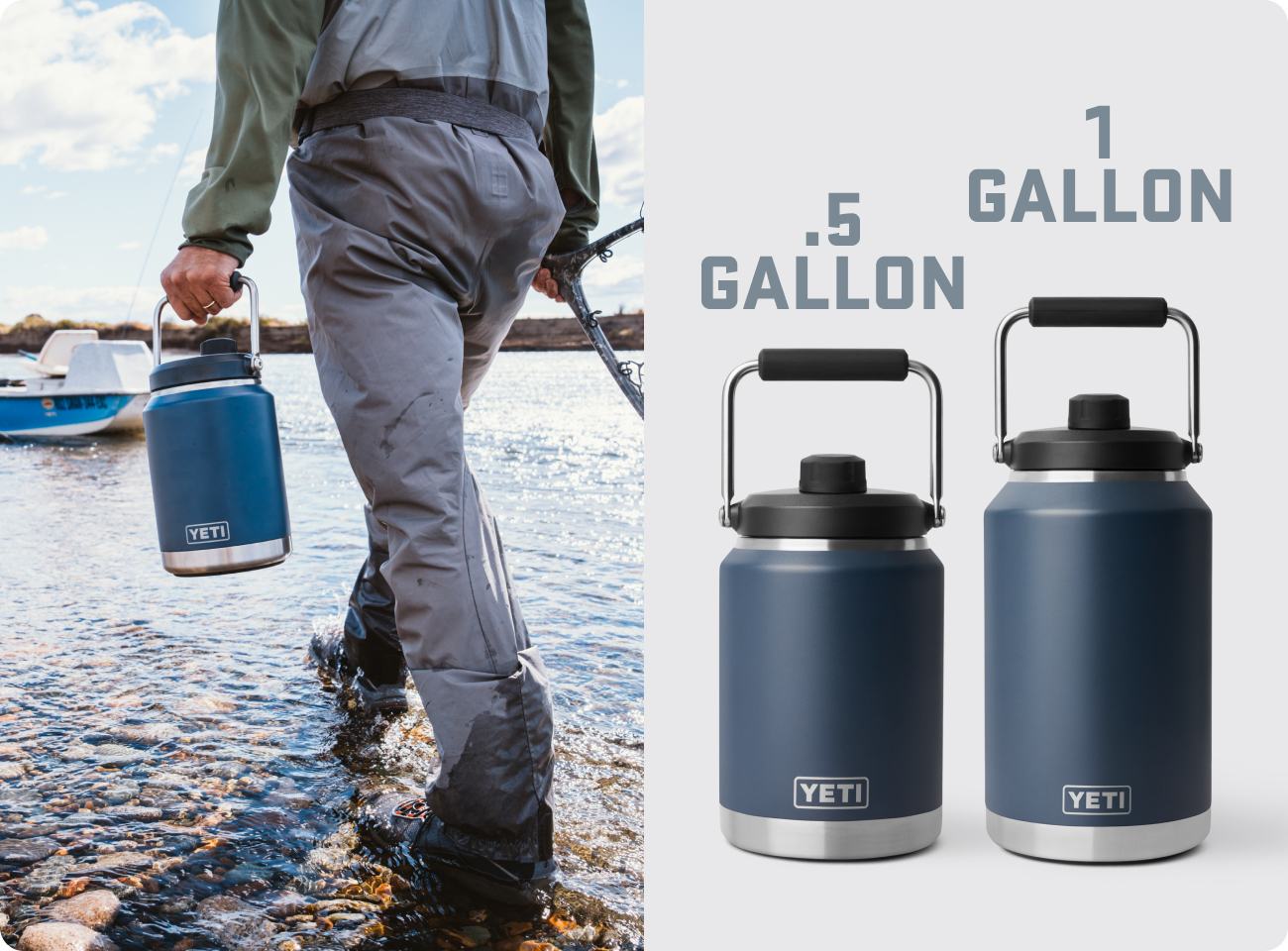 You know that proper hydration and water supply are must-haves for every adventure. That's where YETI Water Bottles come in. We have two styles: Rambler® Bottles & Jugs – which are stainless steel and vacuum-insulated – and Yonder® Water Bottles, which are ultra-durable plastic and not insulated. Each style offers a range of sizes, caps, and endless re-usability. For hydration in the wild, make every ounce count with YETI Water Bottles.